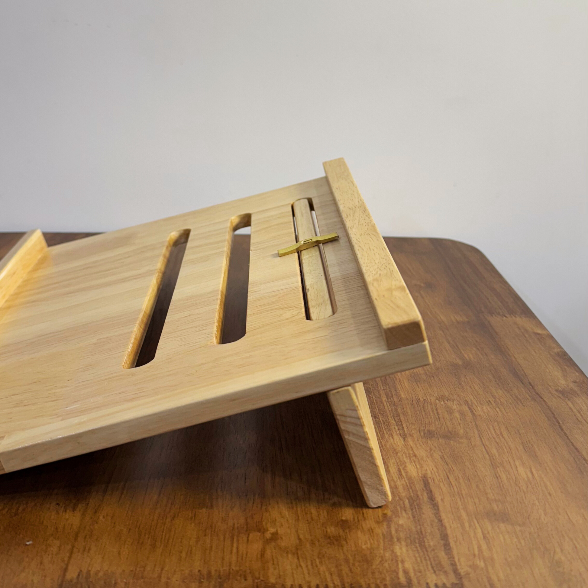 Compact in size (L-20cm x W-25cm x H-11.5cm in its tallest setting), it’s ideal for small spaces, travel, or minimalistic setups. Whether you're working from home, in a dorm, or on the go, its portable and sturdy design ensures a reliable base for your laptop. The natural wooden finish adds a touch of elegance to your workspace while offering unmatched durability.