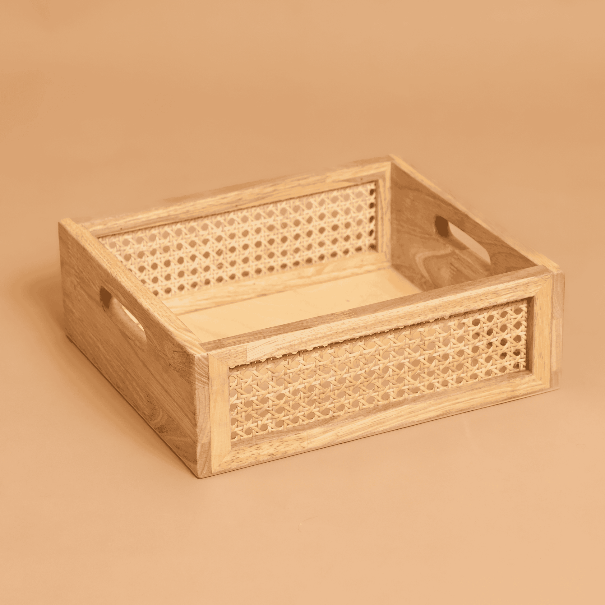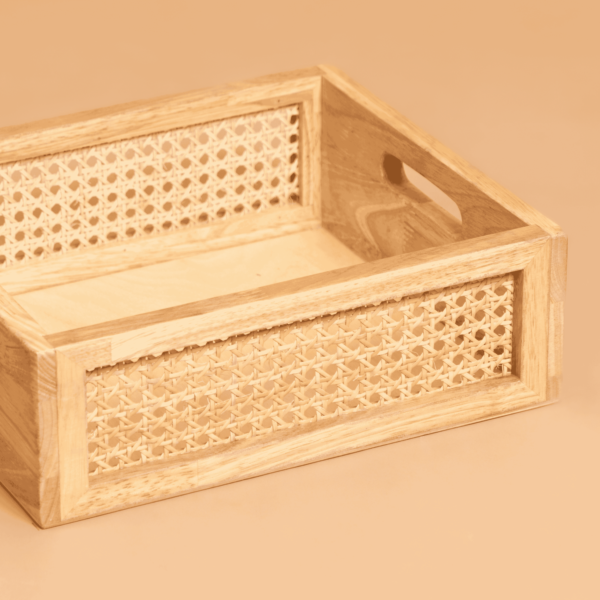 Add a touch of warmth and organization to your home with our Solid Wood and Rattan Wicker Storage Basket in Natural. Expertly crafted from solid wood and eco-friendly rattan, this basket combines durability with stylish design. The rich beige color complements any décor, making it the perfect addition to any room.