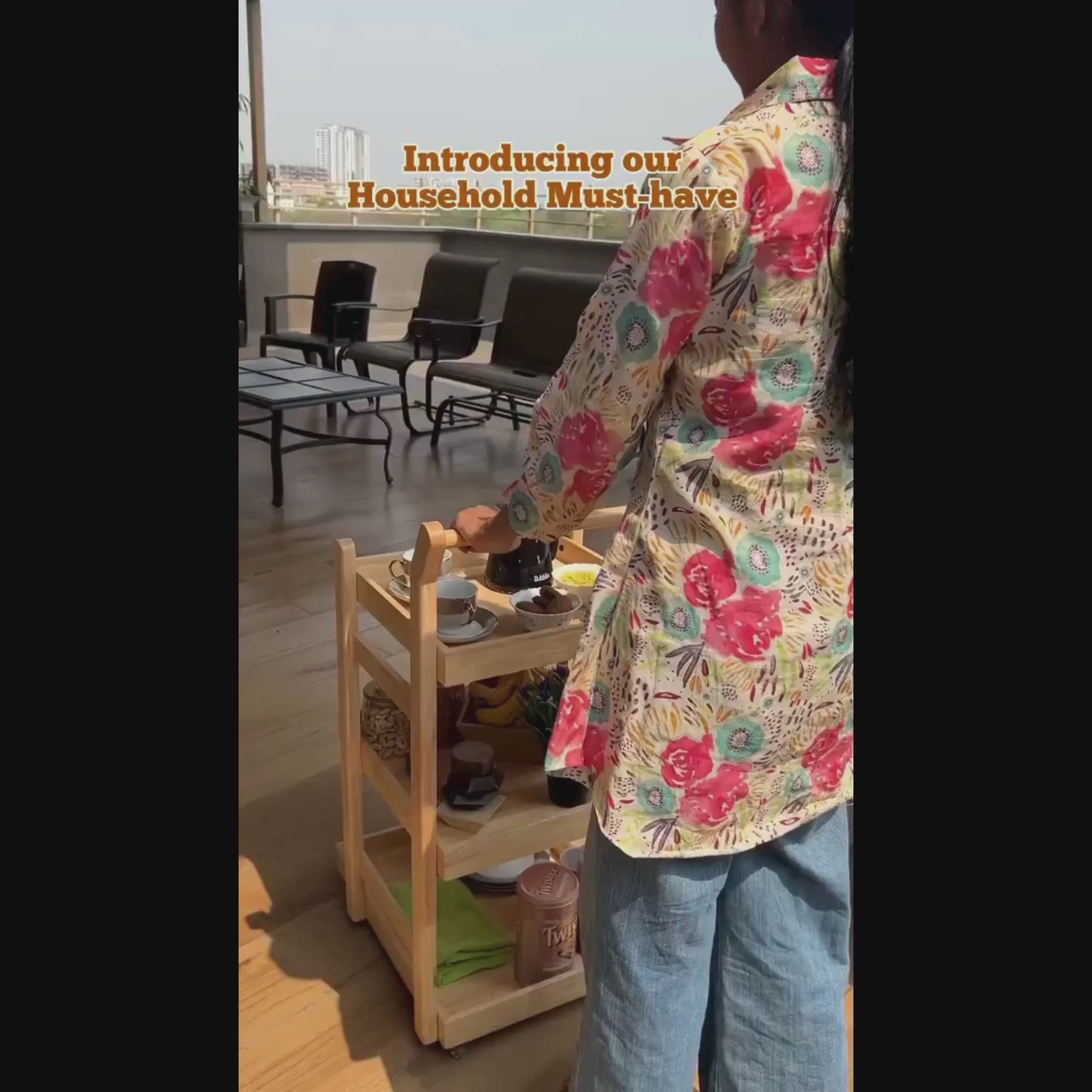 Enhance your home organization with our Solid Wood Rolling Utility Trolley. Crafted from premium solid wood, this wooden trolley offers three levels of storage, making it perfect as your serving trolley, kitchen organization, and storing daily essentials. The built-in wheels ensure easy mobility, while the spill-proof design adds convenience to your daily routine. With a space-optimizing design, this serving trolley wooden maximizes storage in any room, from the kitchen to the living room.