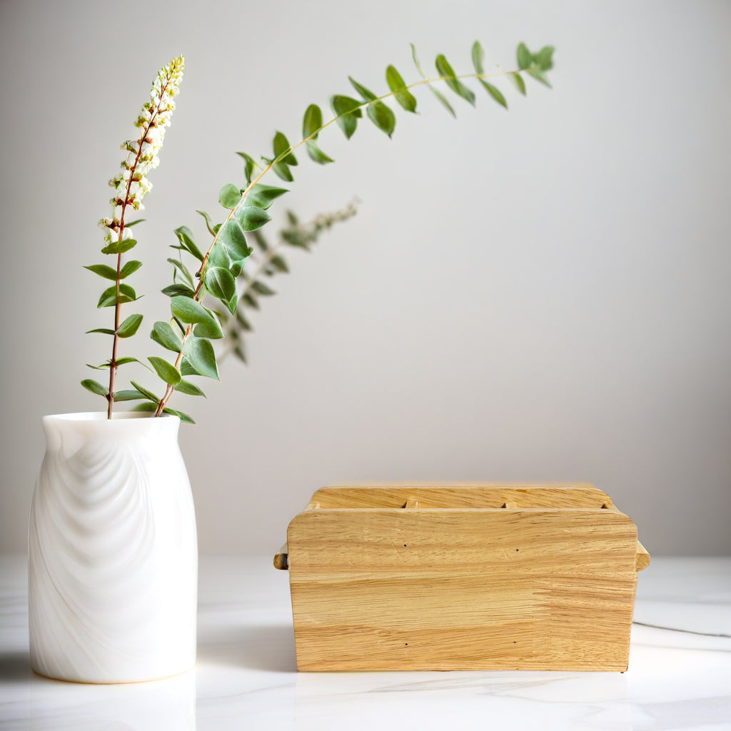 Keep your kitchen and dining space organized with this wooden cutlery holder, crafted from solid rubberwood for long-lasting durability and a natural look. Designed with three spacious compartments, it’s perfect for neatly storing spoons, forks, knives, and other utensils.