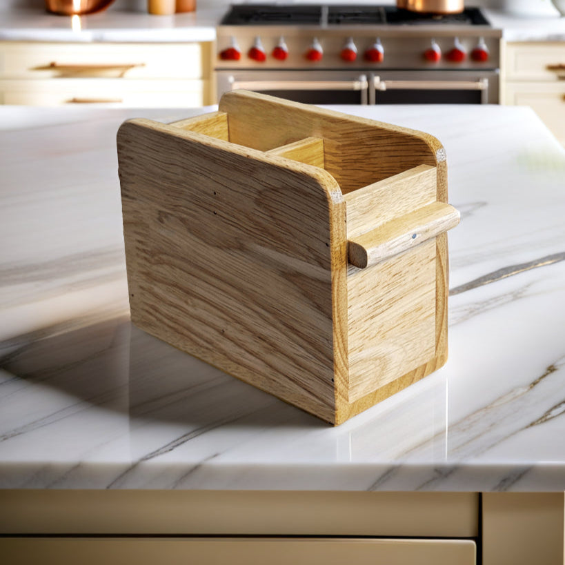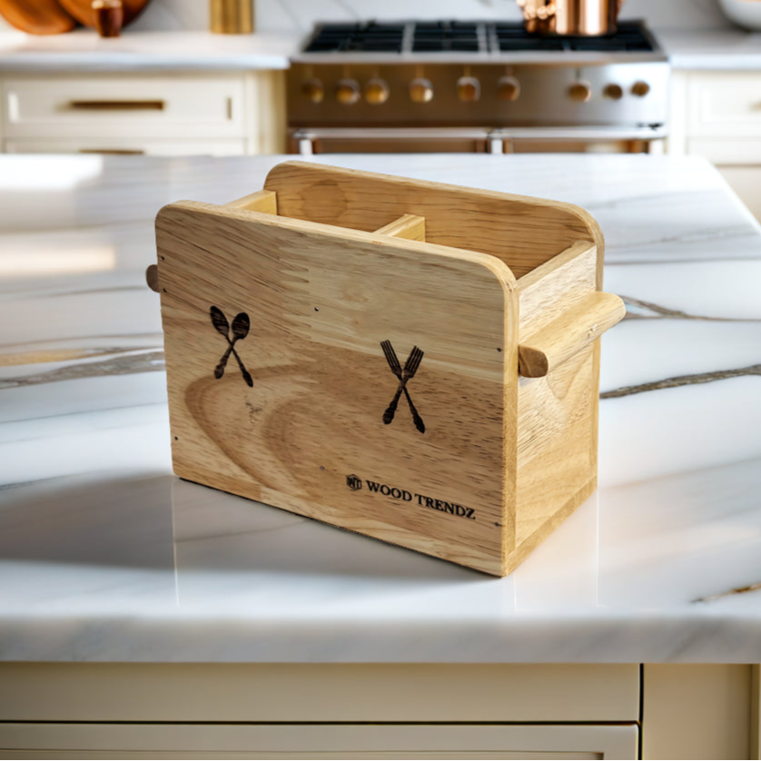 Keep your kitchen and dining space clutter-free with this Wooden Cutlery Holder, crafted from solid rubberwood for long-lasting durability. Featuring two spacious compartments, it’s perfect for neatly organizing spoons, forks, knives, and other utensils.