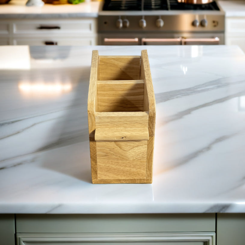 Wooden Cutlery Holder – Solid Rubberwood 2-Compartment Organizer